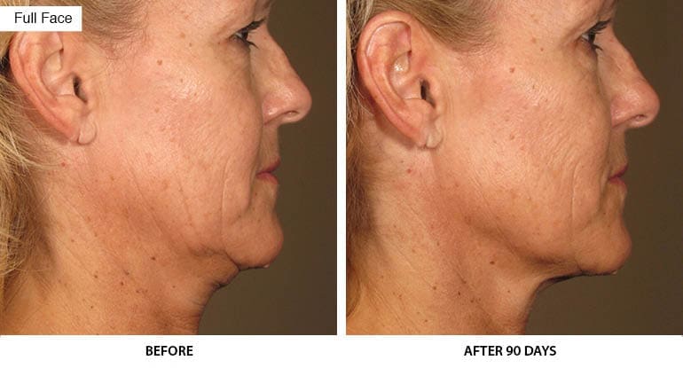 It will take roughly 2-4 months to see final results due to collagen being produced over time. The results will be a more firm, supple area of skin and an improvement in texture. Ultherapy can also treat superficial fine lines and wrinkles, as well as the under-eye area. You can read more about it HERE.